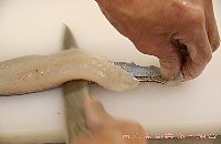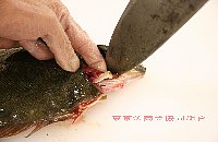 | 腹の少し後ろに切り目を入れ、身をめくりながら包丁を入れる |