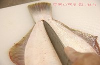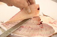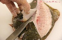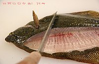 | 身をめくりながら、中骨に沿って包丁を入れて切り離す |