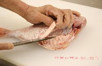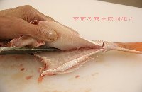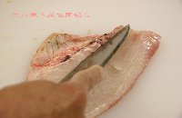 | 腹骨を包丁でそぐように切る(もう片側の身も同様に) |