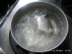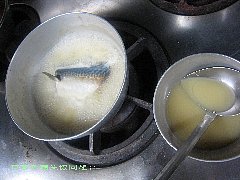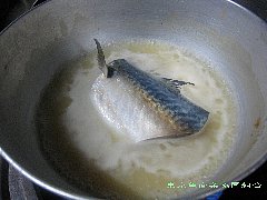 ステップ5で作った味噌ダレを半量別の鍋に移し、ステップ4で掃除したサバを鍋に入れる。