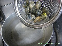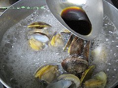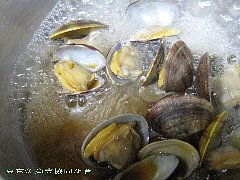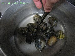 鍋を火にかける(写真のようにあさりが浸る位まで酒を入れる)