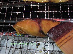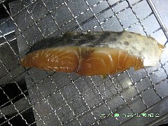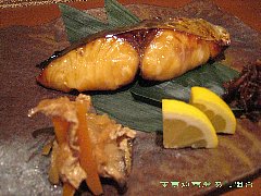 焼き上がったら、皿にのせお好みでレモン・すだち・はじかみ等を添える。