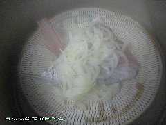 沸騰した蒸し器に鯛の乗った皿を入れ火の通りにくい野菜から入れ、火にかけふたをする。