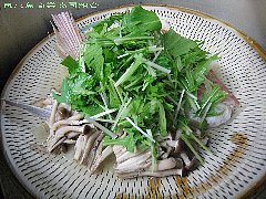 蒸し器から取りだし、もみじおろし・万能ネギ等の薬味を用意する。