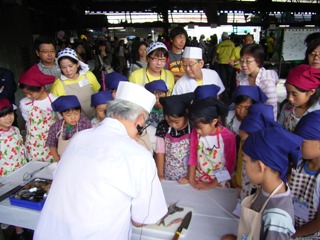 築 地 い ち ば 祭 り 魚食普及 築地市場が魚を安全で適正に取引していることを知ってもらい、 新鮮で美味しい本物の魚に触れてもらうことを目的に目的に開催された 築地市場関係者が一丸となったお祭りです 雨も上がって す ご い 人 出 ! 東京魚商は 築地お魚捌き方教室 来場の小学生に アジのさばき方を教えました 場所は築地市場内 東京魚商の茶屋(買荷保管所) 1回16名で一人に一人の魚屋さんがついて三枚おろしを教えます さばいたアジを叩いてつみれにて つみれ汁を食べてもらいました 子供たちはみんな美味しい!と大満足でした。 石狩鍋、ズワイガニの鍋も完売! 大盛況に終わりました。