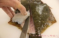 | 身をめくりながら、中骨に沿って包丁を入れて切り離す |