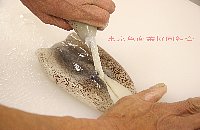 | ひれ(通称:えんぺら)を持ち、親指を間に入れて胴からはぎ取る |