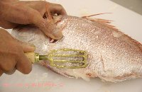 | ウロコ取りでウロコを丁寧に取る(腹びれの辺りも丁寧にウロコを取る) |